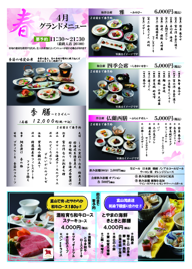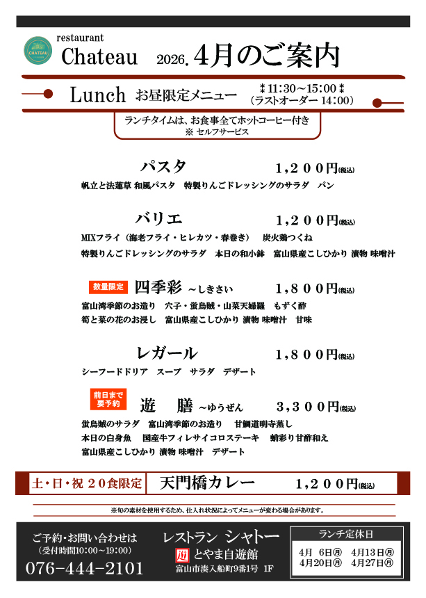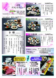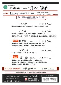 レストラン 4月のメニューのご案内です。