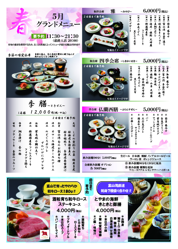 ディナータイム 17時30分 ~ 21時30分(前日まで要予約)
